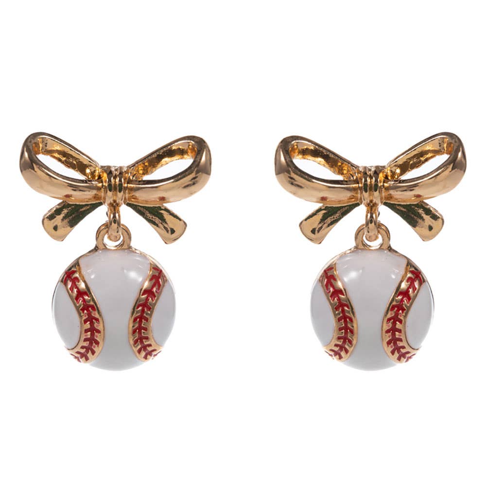 Add playful charm to your game-day outfit with these glitter baseball drop earrings. Featuring a cute bow detail, they’re perfect for tailgates, sports events, or showing team spirit in a fun and stylish way.