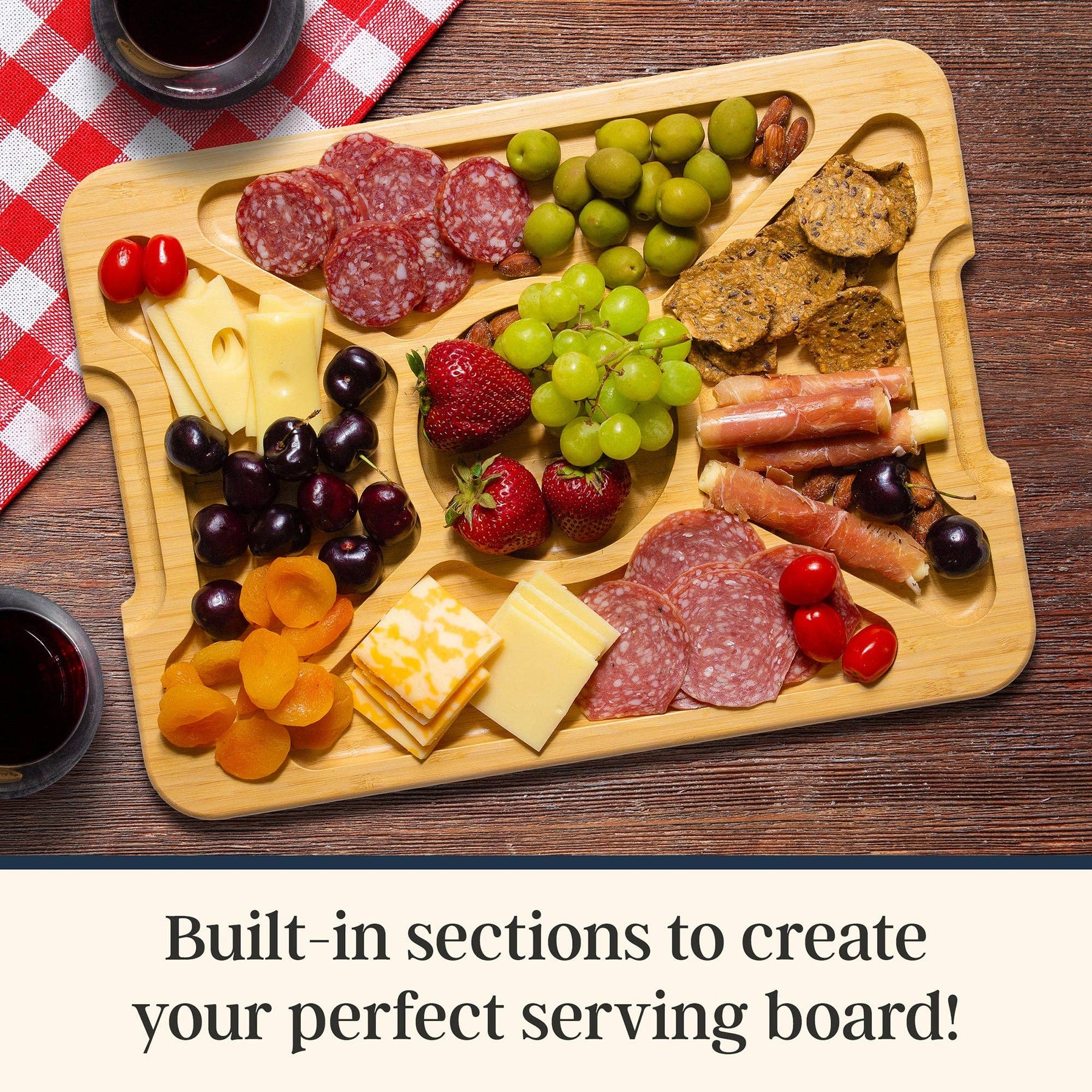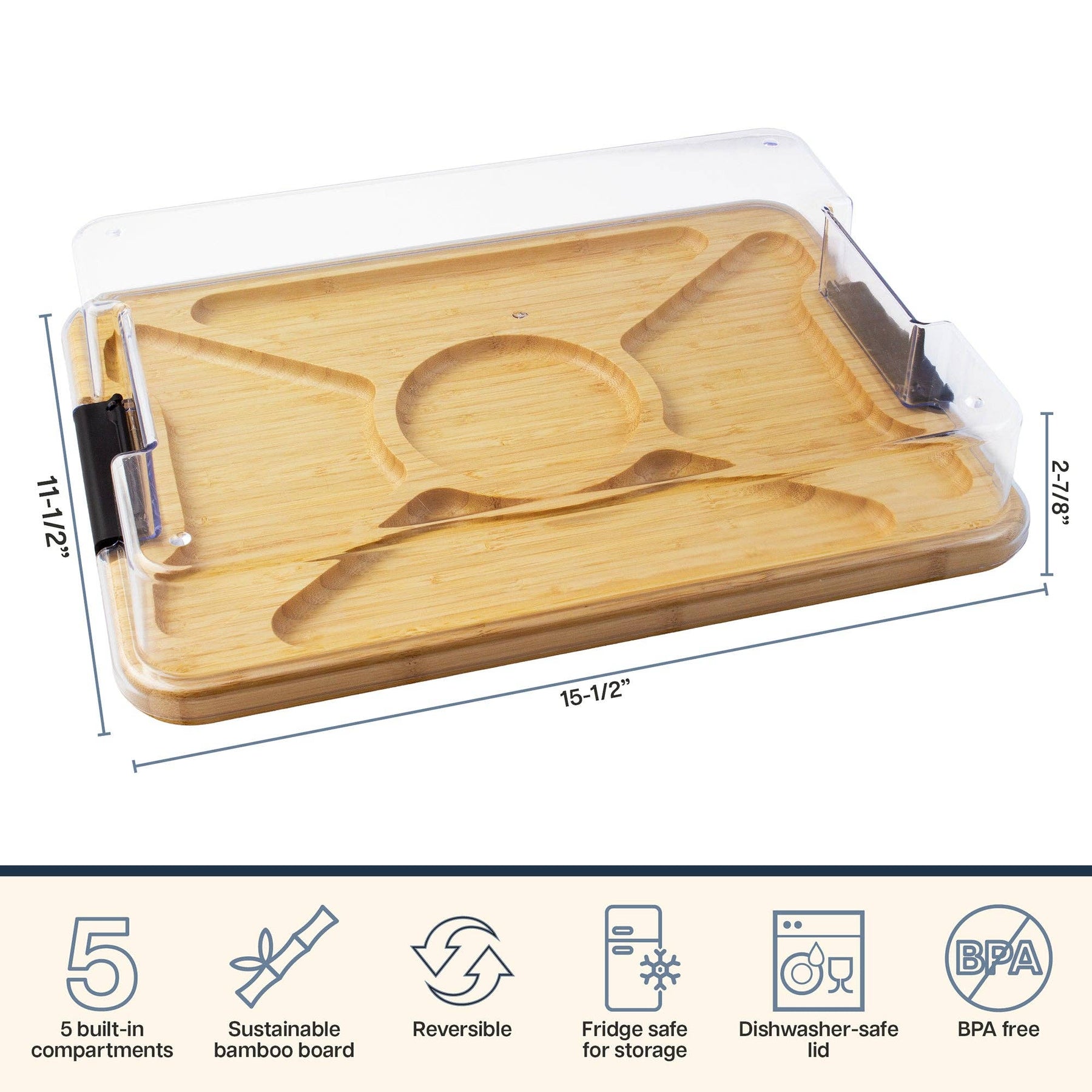 • Built-in compartments for easy charcuterie styling